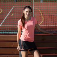 Women's ALERTA sports skirt with inner elastic shorts is made of a very comfortable, breathable, quick-drying material. The skirt has a comfortable wide rubber at the waist. The inner shorts are sewn with flat seams, which guarantee maximum comfort when moving. On the right side is a shaped slit for comfortable move. There is a pocket on the right short of the shorts, which is hidden under the skirt. The skirt is suitable for running, in-line skating, fitness or tennis.