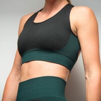 GEMA BRA is a women's sports bra. Its modern functional design combined with an interestingly structured material catches the eye at first sight. It is made using seamless technology, which guarantees high strength and elasticity of the product. Thanks to this, the bra is comfortable, fits perfectly to the body, adapts to every figure and looks perfect. The material used is soft and pleasant to the touch. At the same time, it offers the functional properties of sports and technical clothing. Thanks to the double-layer design, the top is stronger and also includes removable pads. This original functional bra looks great not only on its own, but also in combination with the GEMA CROP LS sweatshirt and GEMA LEGGINS leggings.
