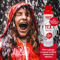 HEY SPORT TEX WASH is a detergent that reliably and deeply cleans all membrane textiles while preserving the functionality and colour of these materials. It neutralises all unpleasant odours. It is suitable for all types of membranes, e.g. GoreTex, Shoeller, Event.