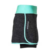 Women's ALERTA sports skirt with inner elastic shorts is made of a very comfortable, breathable, quick-drying material. The skirt has a comfortable wide rubber at the waist. The inner shorts are sewn with flat seams, which guarantee maximum comfort when moving. On the right side is a shaped slit for comfortable move. There is a pocket on the right short of the shorts, which is hidden under the skirt. The skirt is suitable for running, in-line skating, fitness or tennis.