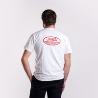 Men's bamboo shirt JAWA FAN is made of a bamboo and cotton blend. Bamboo fibre has natural antibacterial properties and ensures optimal thermoregulation. In hot weather, bamboo is naturally cool to the touch and this property is maintained for the knitted fabric properties. The material has a higher grammage, making the shirt suitable for year-round wear. It has a round neckline and a loose fit that ensures maximum comfort. Fans of JAWA motorcycles will appreciate the large logo on the back.
